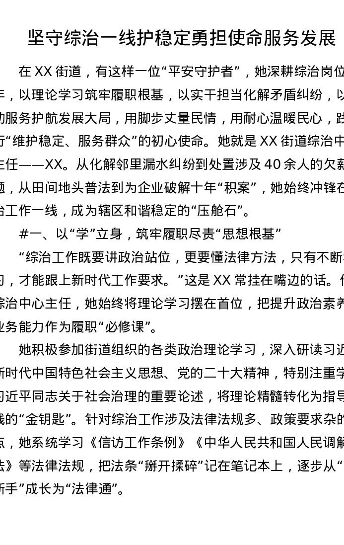 XX街道综治中心主任两优一先优秀共产党员先进事迹材料