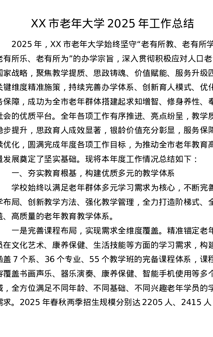 XX市老年大学2025年工作总结
