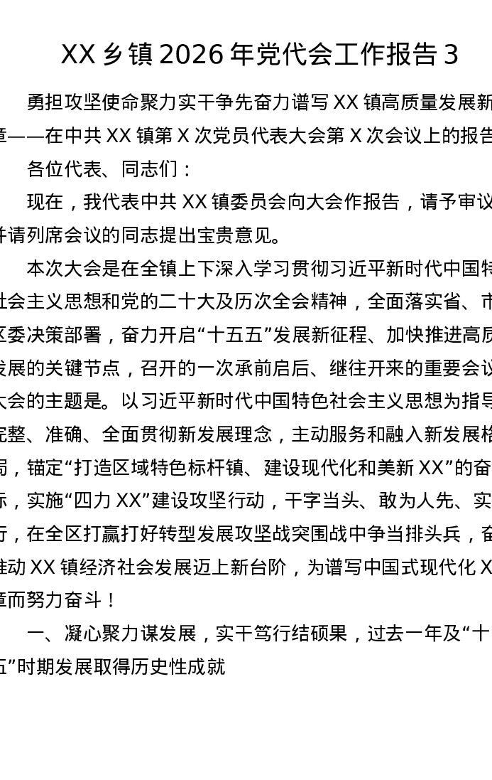 XX乡镇2026年党代会工作报告3