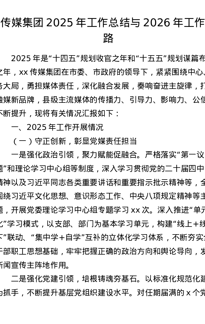 传媒集团2025年工作总结与2026年工作思路