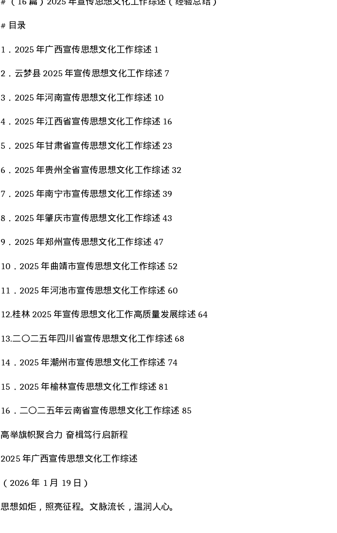 汇编:2025年宣传思想文化工作综述(经验总结)16篇