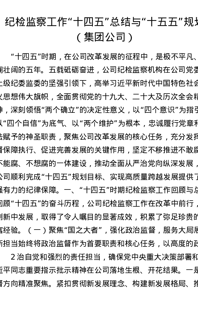 纪检监察工作十四五总结与十五五规划(集团公司)