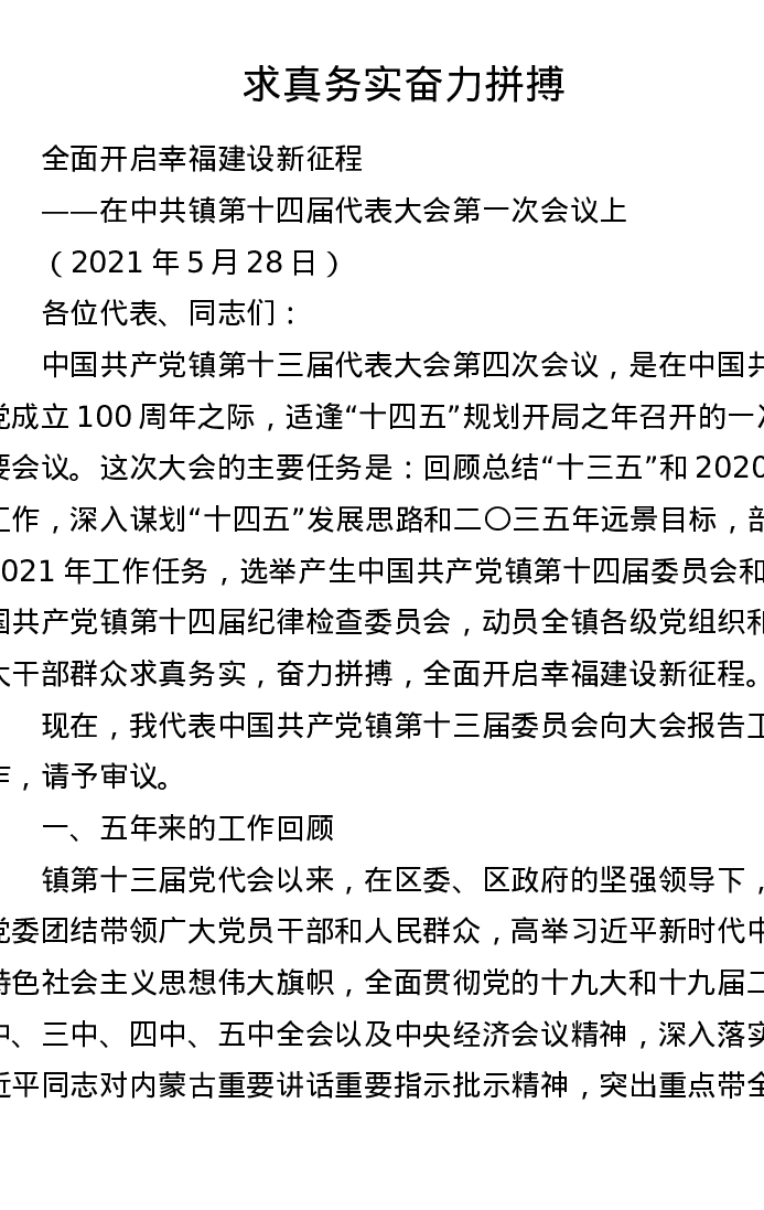 乡镇2021年党代会工作报告(8764字)