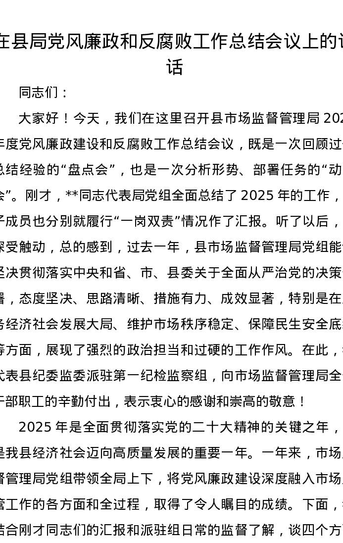 在县局党风廉政和反腐败工作总结会议上的讲话
