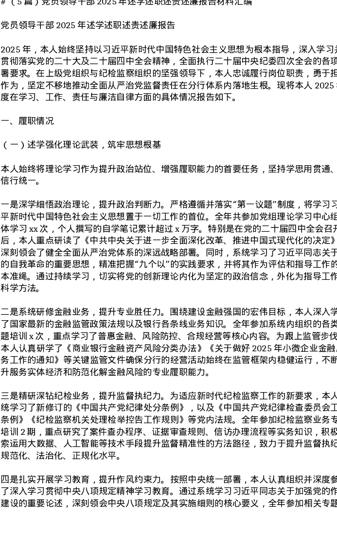 汇编:党员领导干部2025年述学述职述责述廉报告材料5篇