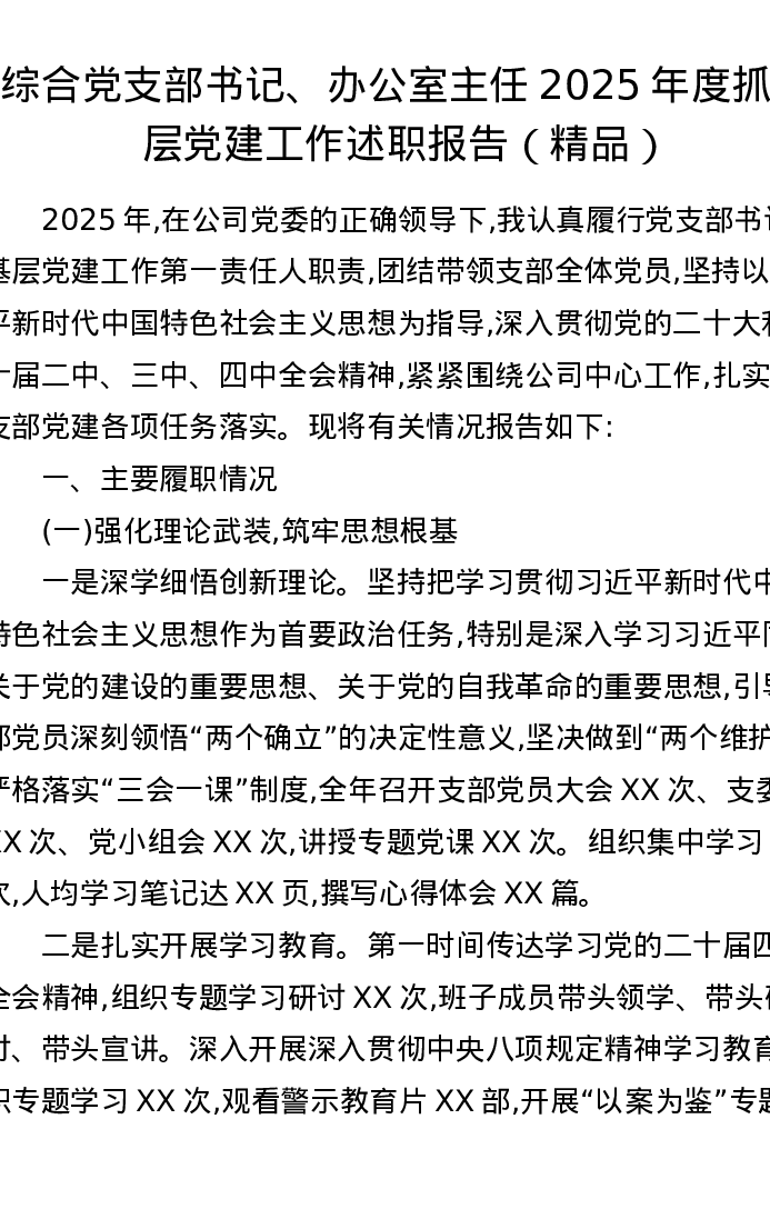 综合党支部书记、办公室主任2025年度抓基层党建工作述职报告
