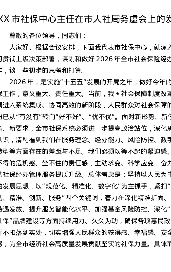 XX市社保中心主任在市人社局务虚会上的发言(3363字)