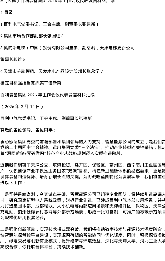 汇编:百利装备集团2026年工作会议代表发言6篇