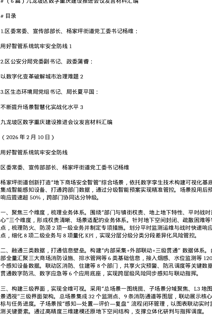 汇编:九龙坡区数字重庆建设推进会议发言6篇