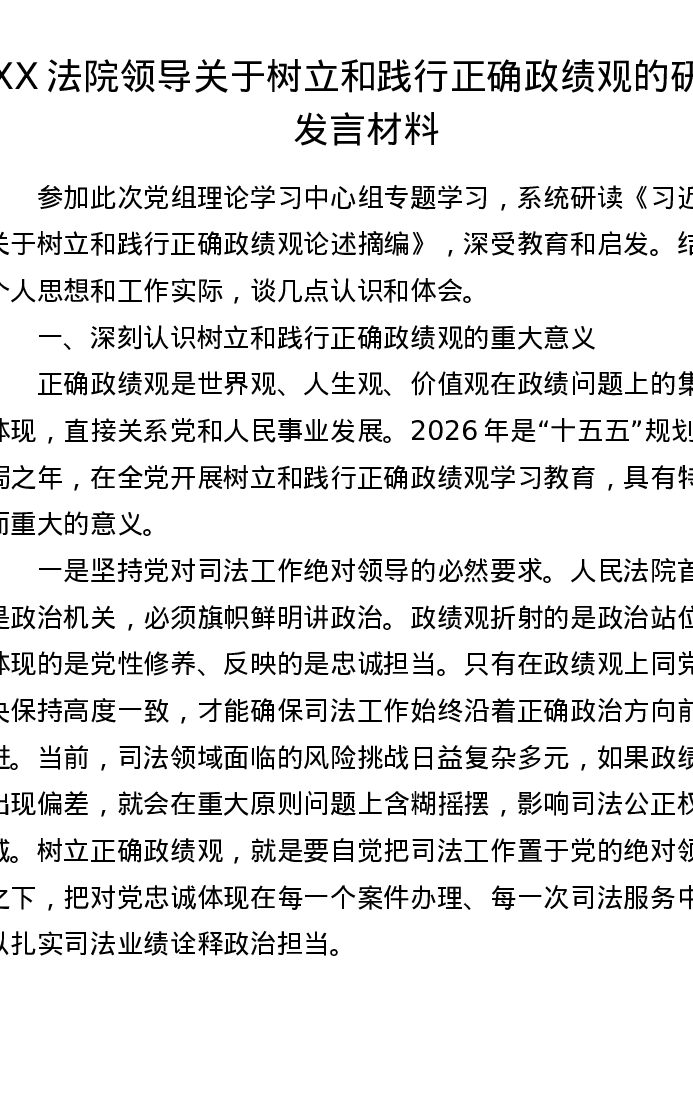 XX 法院领导关于树立和践行正确ZJG的研讨发言材料