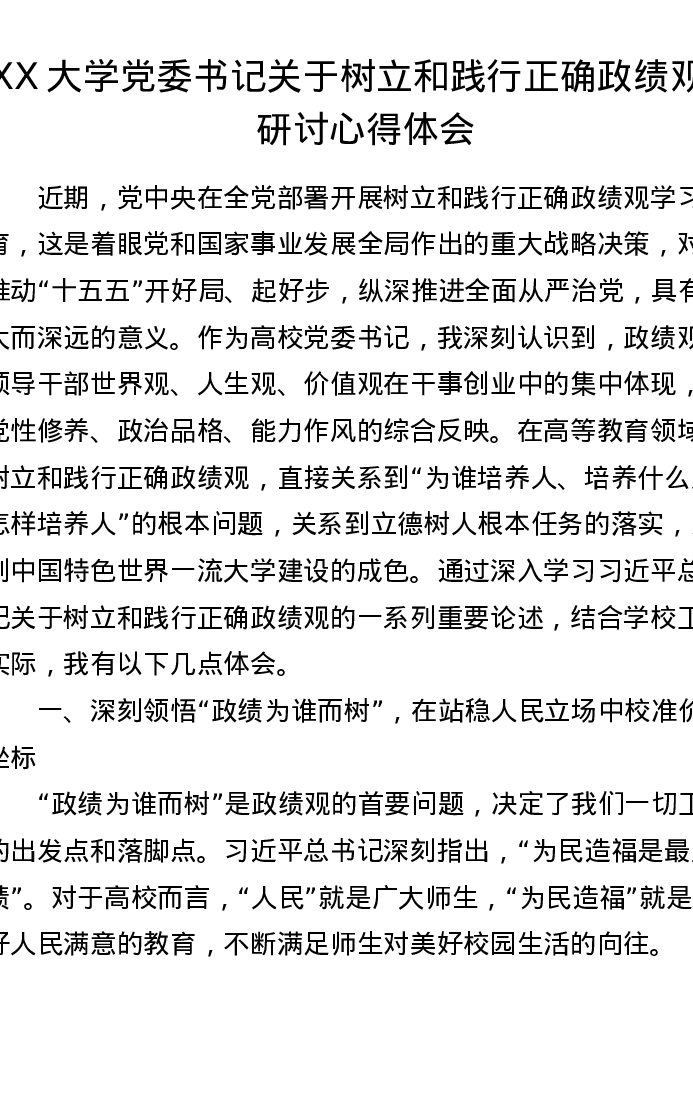 XX大学党委书记关于树立和践行正确ZJG的研讨心得体会2