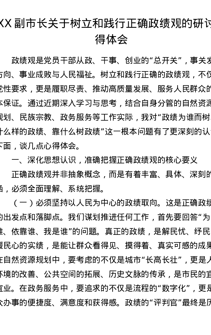 XX副市长关于树立和践行正确ZJG的研讨心得体会2