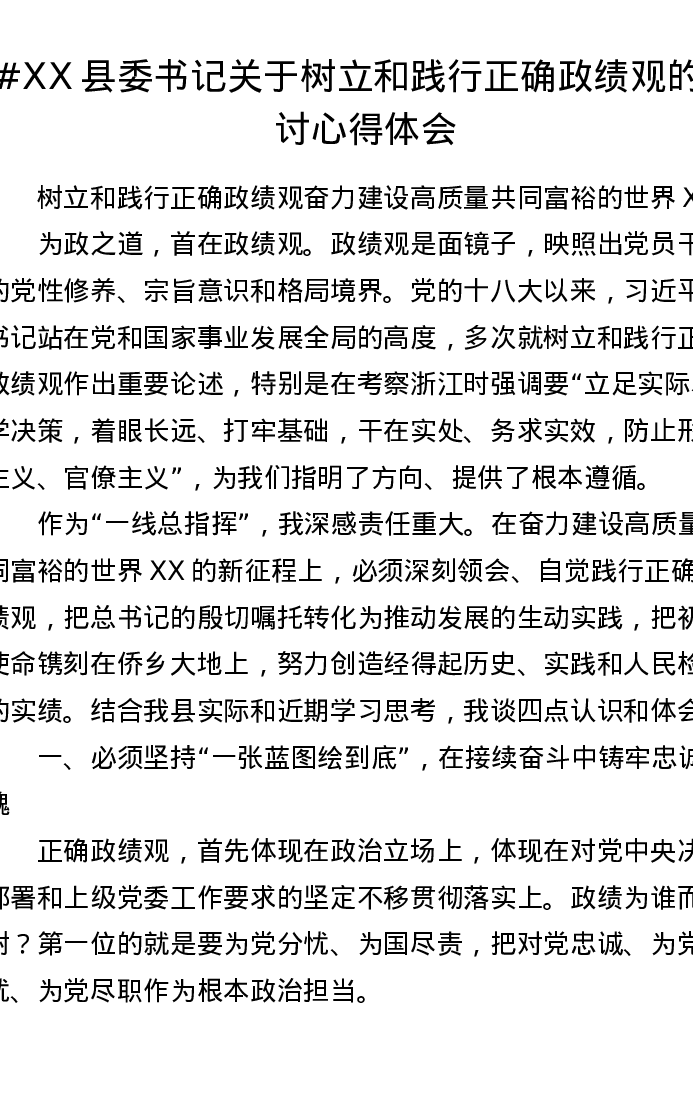 XX县委书记关于树立和践行正确ZJG的研讨心得体会3