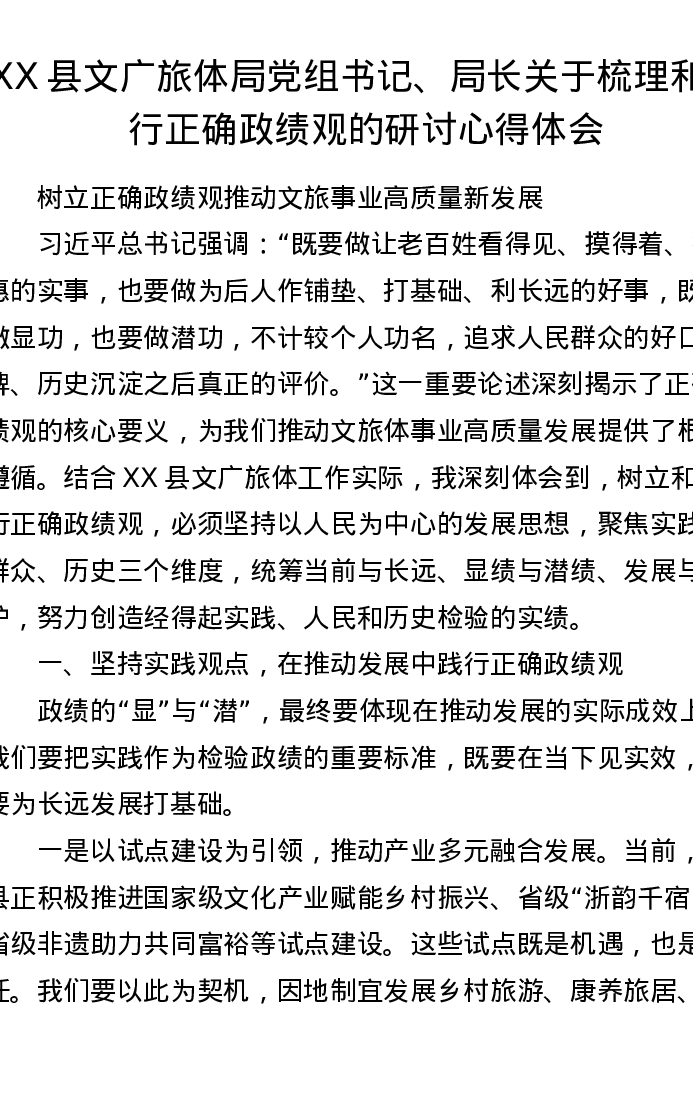 XX县文广旅体局党组书记、局长关于梳理和践行正确ZJG的研讨心得体会