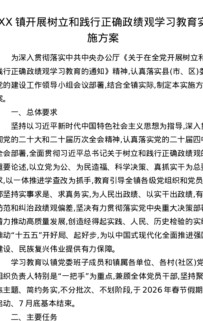 XX镇开展树立和践行正确ZJG学习教育实施方案