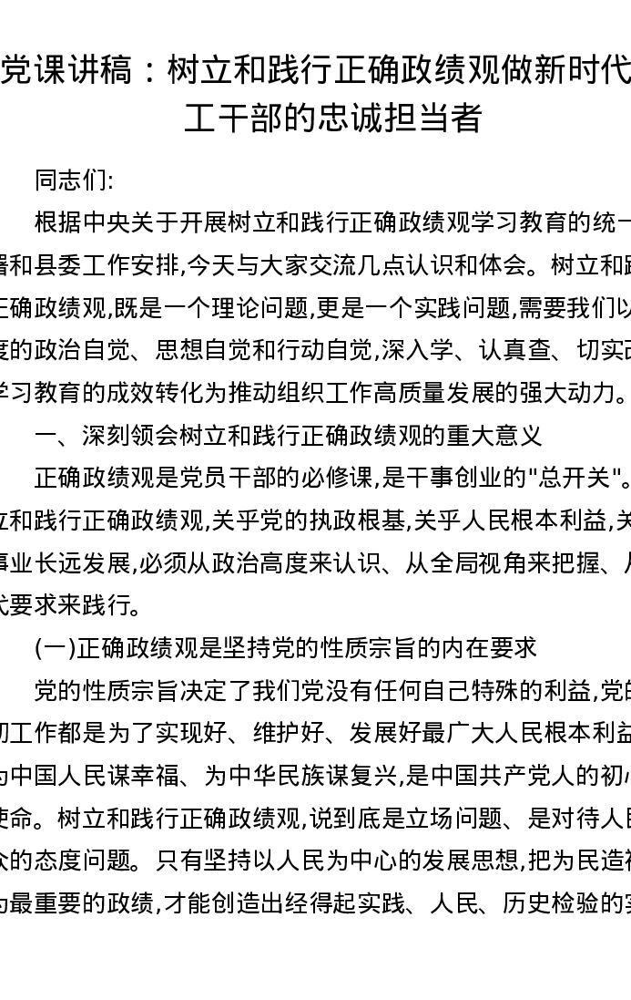 党课讲稿:树立和践行正确ZJG 做新时代组工干部的忠诚担当者