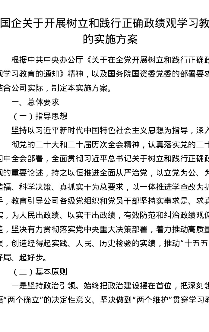 国企关于开展树立和践行正确ZJG学习教育的实施方案(3581字)