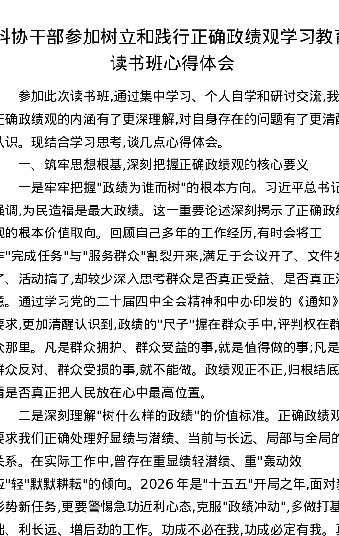 科协干部参加树立和践行正确ZJG学习教育读书班心得体会