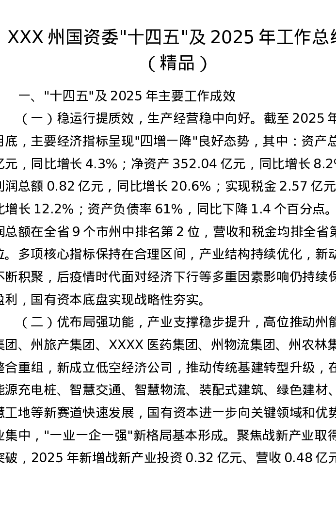 XXX州国资委十四五及2025年工作总结