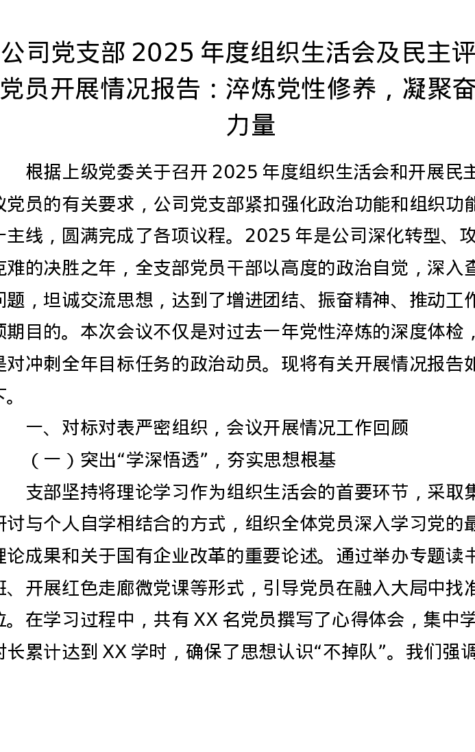 公司党支部2025年度组织xxx及民主评议党员开展情况报告:淬炼党性修养,凝聚奋斗力量