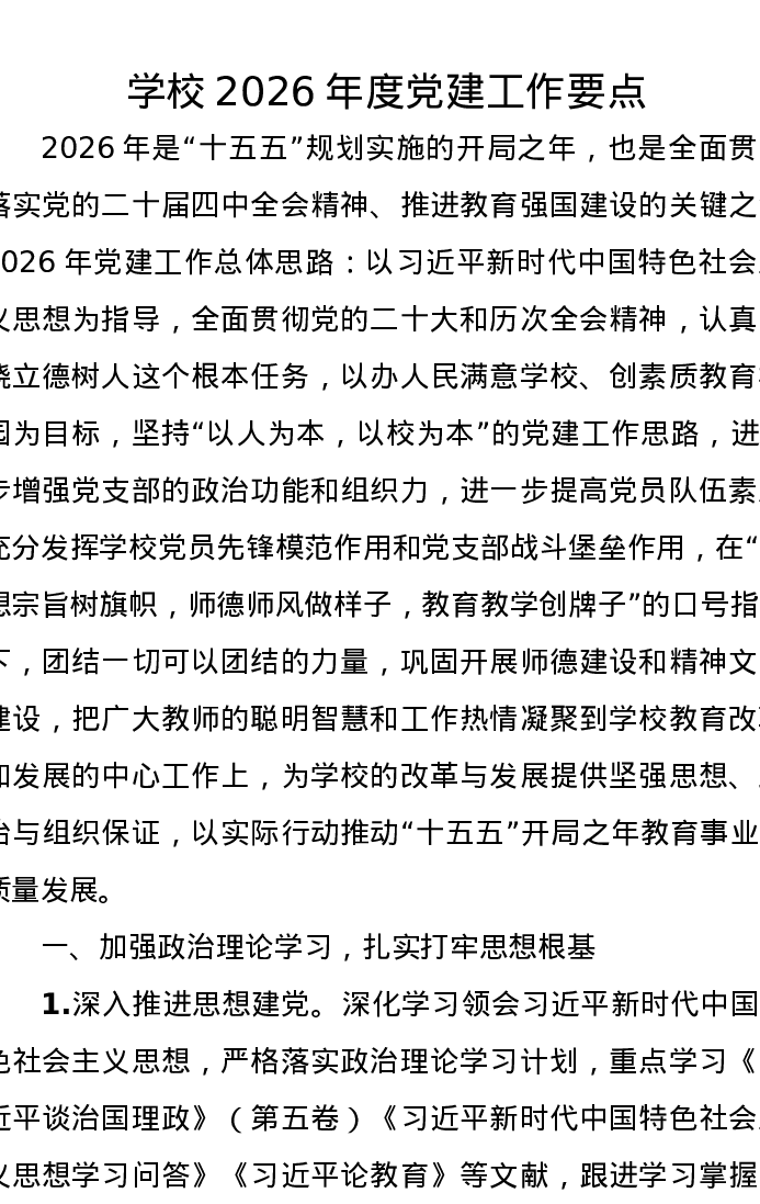 学校2026年度党建工作要点