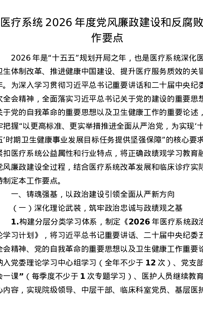 医疗系统2026年度党风廉政建设和反腐败工作要点