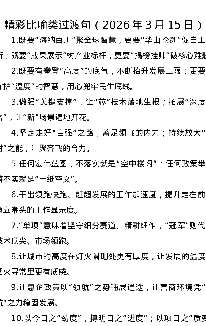 精彩比喻类过渡句(2026年3月15日)