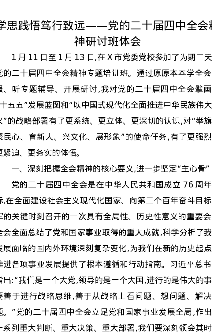 学思践悟笃行致远——党的二十届四中全会精神研讨班体会