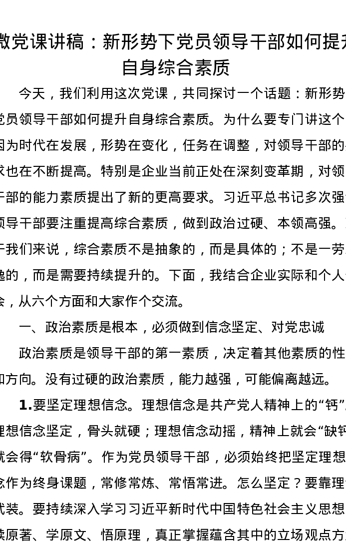 微党课讲稿:新形势下党员领导干部如何提升自身综合素质