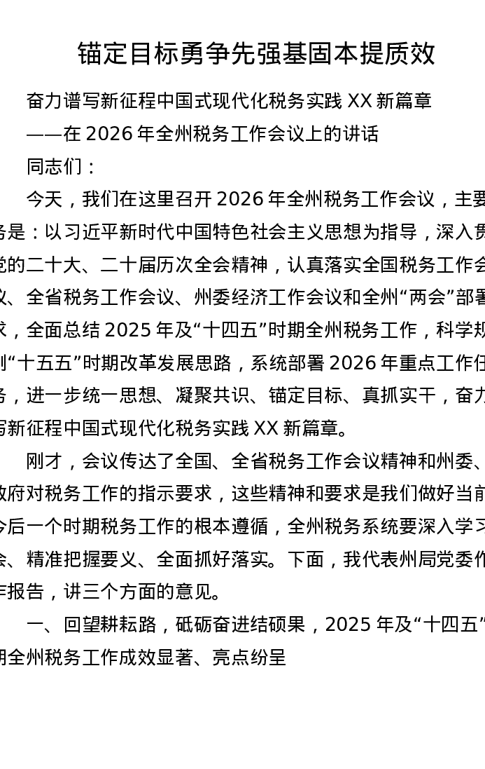 XX州税务局局长在2026年全州税务工作会议上的讲话(15303字)