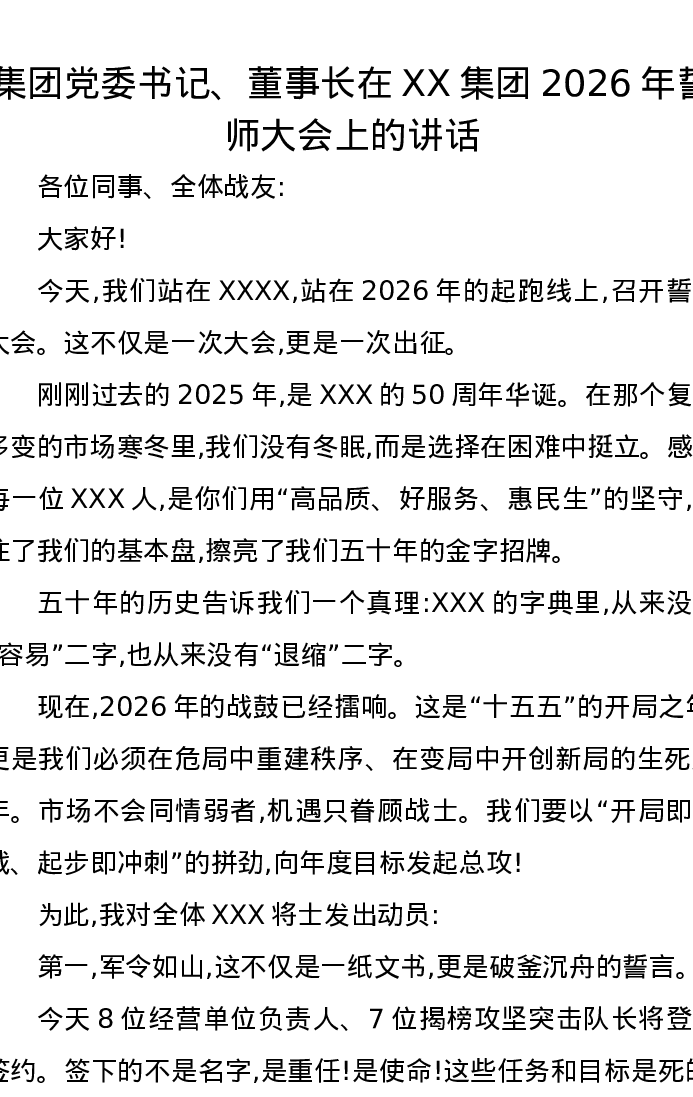 集团党委书记、董事长在XX集团2026年誓师大会上的讲话