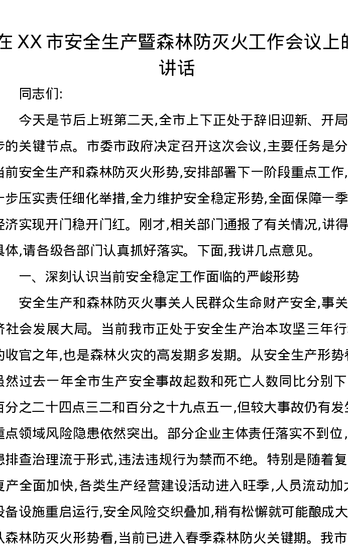 在XX市安全生产暨森林防灭火工作会议上的讲话