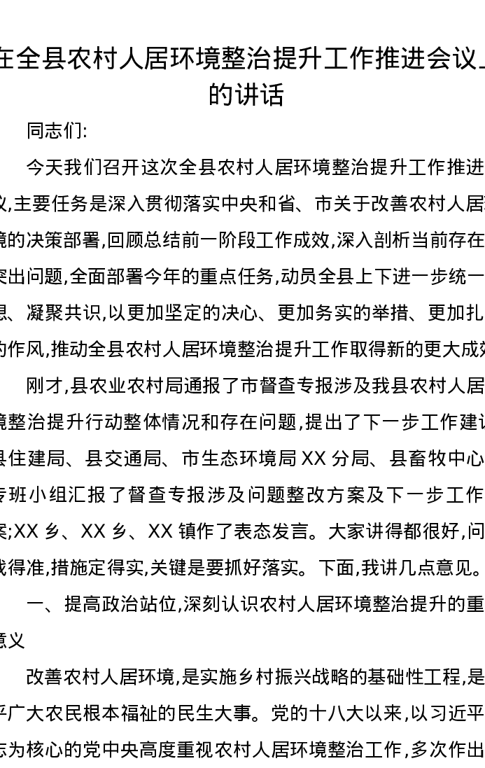 在全县农村人居环境整治提升工作推进会议上的讲话_1