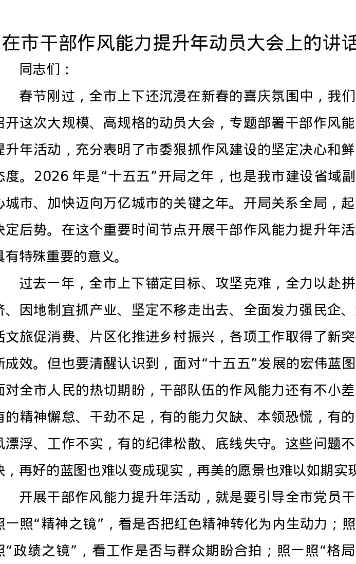 在市干部作风能力提升年动员大会上的讲话