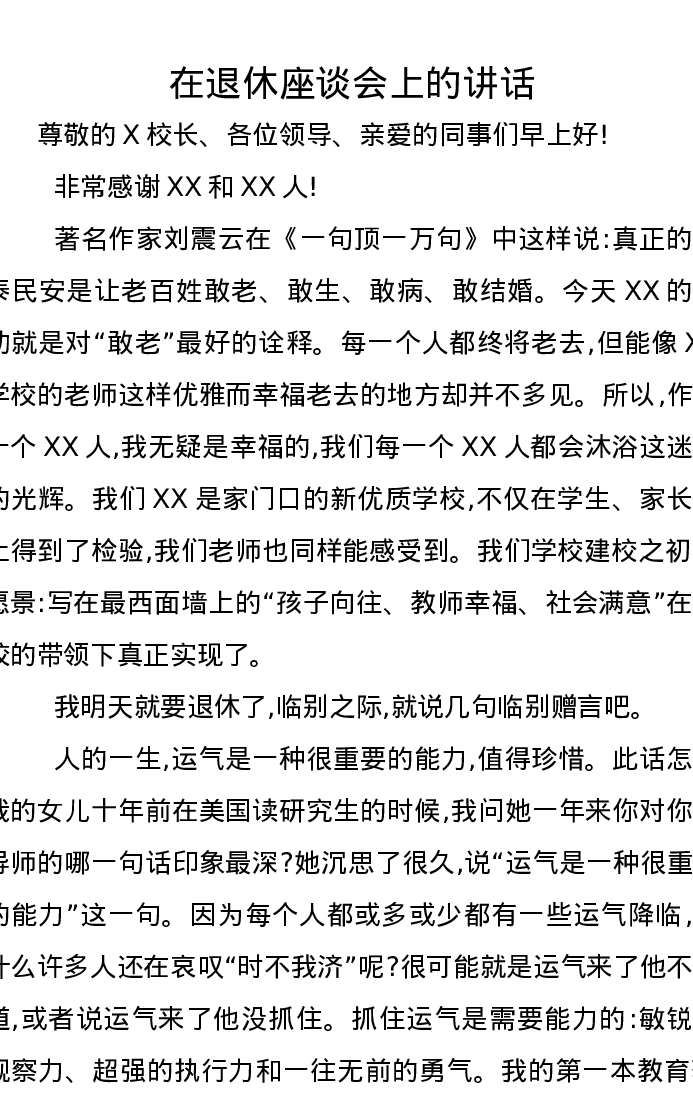 在退休座谈会上的讲话