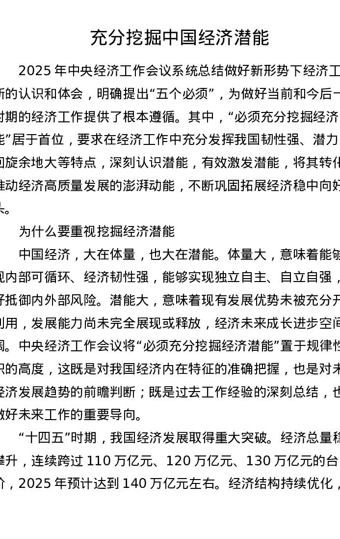 充分挖掘中国经济潜能