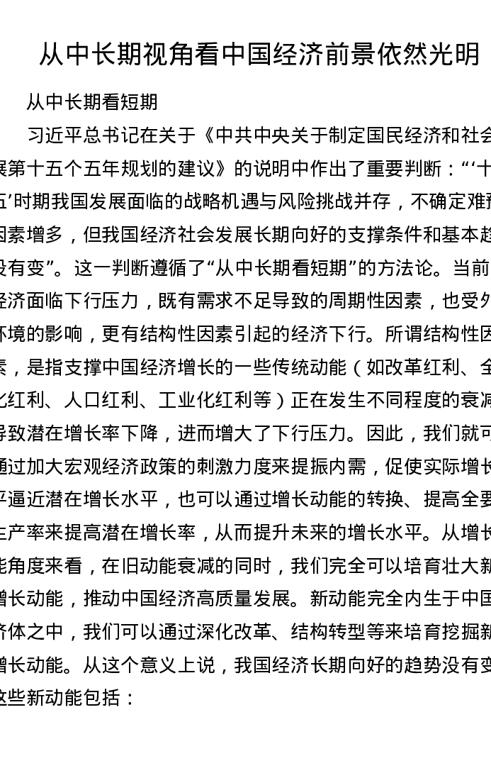 从中长期视角看中国经济前景依然光明