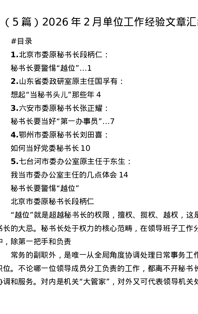 汇编:2026年2月单位工作经验文章5篇