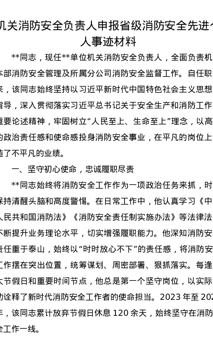 机关消防安全负责人申报省级消防安全先进个人事迹材料