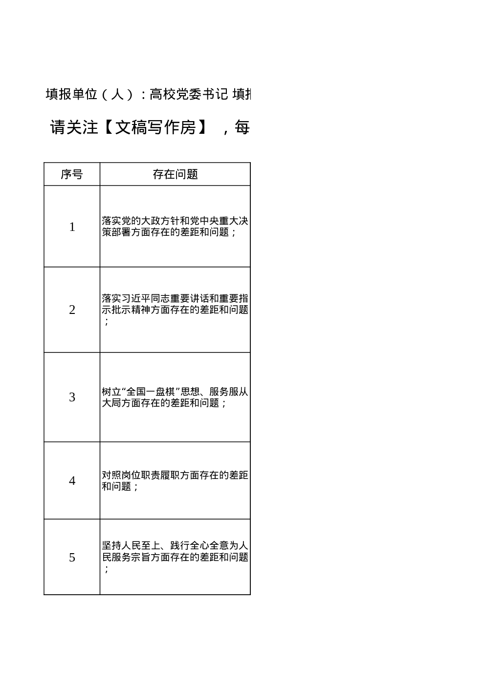 2026年ZJG学习教育查摆问题清单(高校党委书记个人(16方面)表格