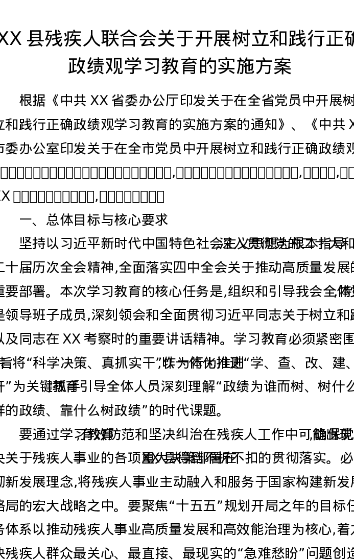 XX县残疾人联合会关于开展树立和践行正确ZJG学习教育的实施方案
