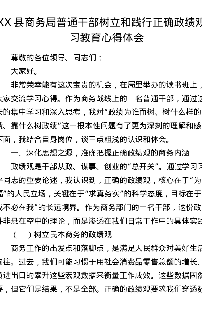 XX县商务局普通干部树立和践行正确ZJG学习教育心得体会