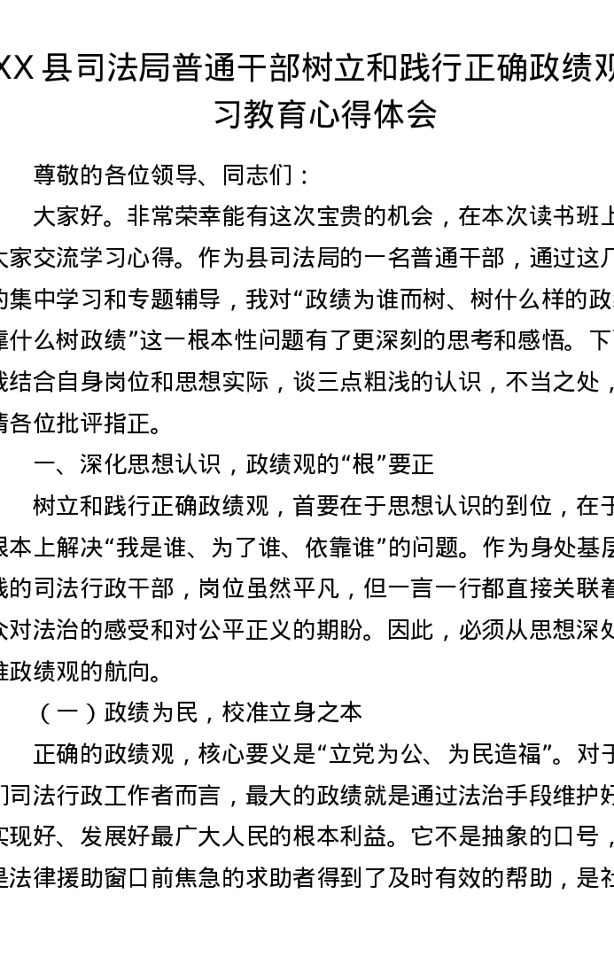 XX县司法局普通干部树立和践行正确ZJG学习教育心得体会