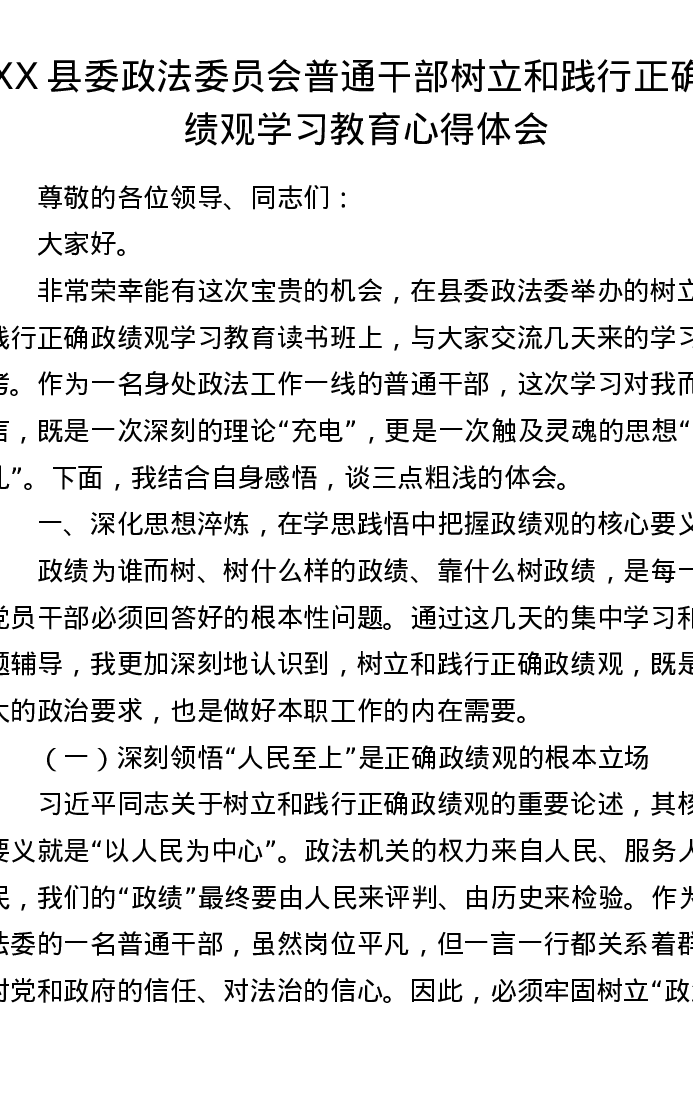 XX县委政法委员会普通干部树立和践行正确ZJG学习教育心得体会