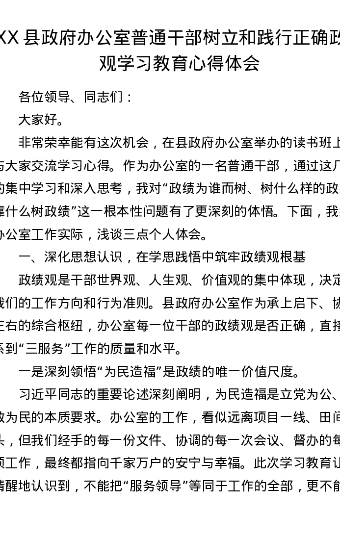 XX县政府办公室普通干部树立和践行正确ZJG学习教育心得体会