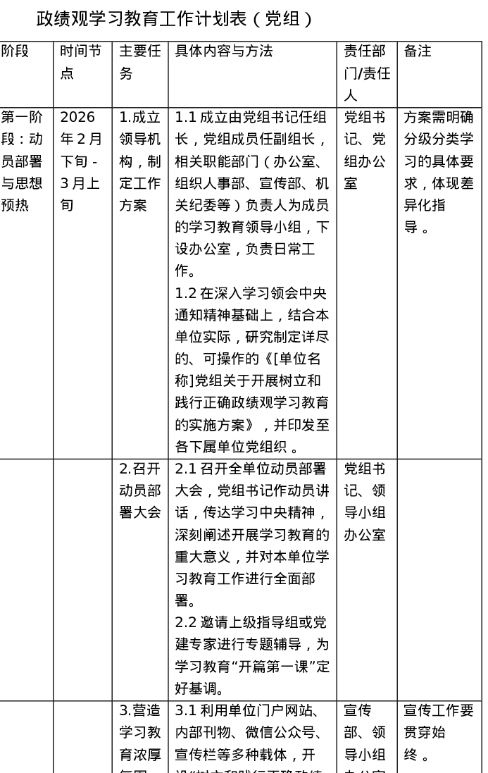 ZJG学习教育工作计划表(党组)表格
