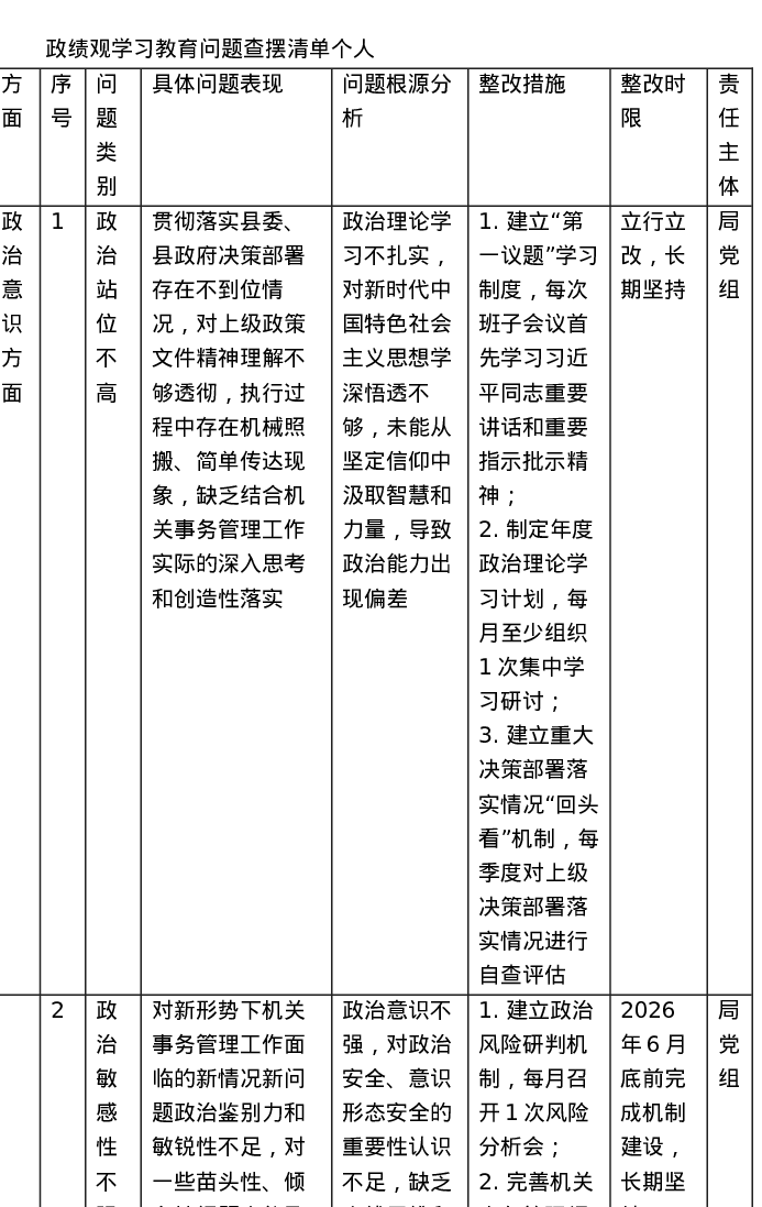 ZJG学习教育问题查摆清单(表格)