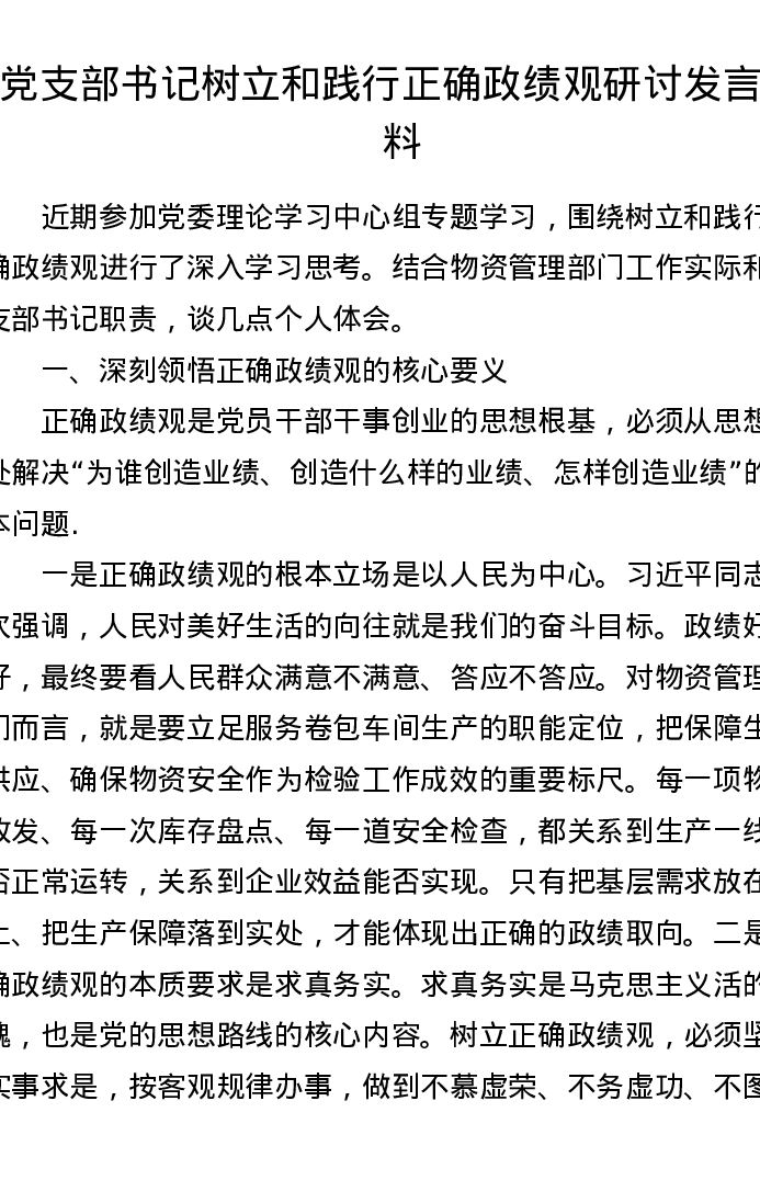 党支部书记树立和践行正确ZJG研讨发言材料