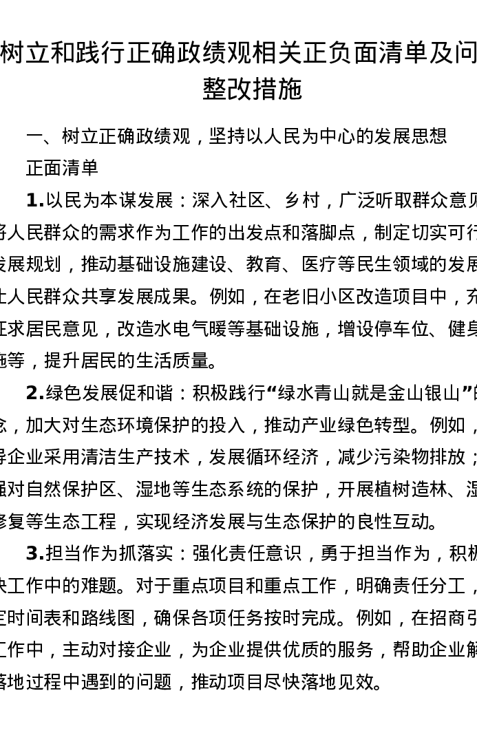 树立和践行正确ZJG相关正负面清单及问题整改措施