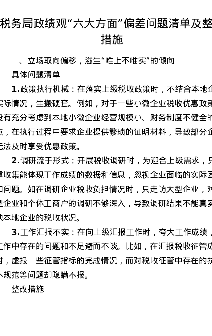 税务局ZJG六大方面偏差问题清单及整改措施